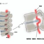 腰椎椎間板ヘルニアは、背骨の間にある椎間板が破れて、神経を圧迫することによって坐骨神経痛が発症する原因の一つです。この場合、椎間板の変形や損傷が坐骨神経に直接的に影響を与え、強い痛みが発生します。